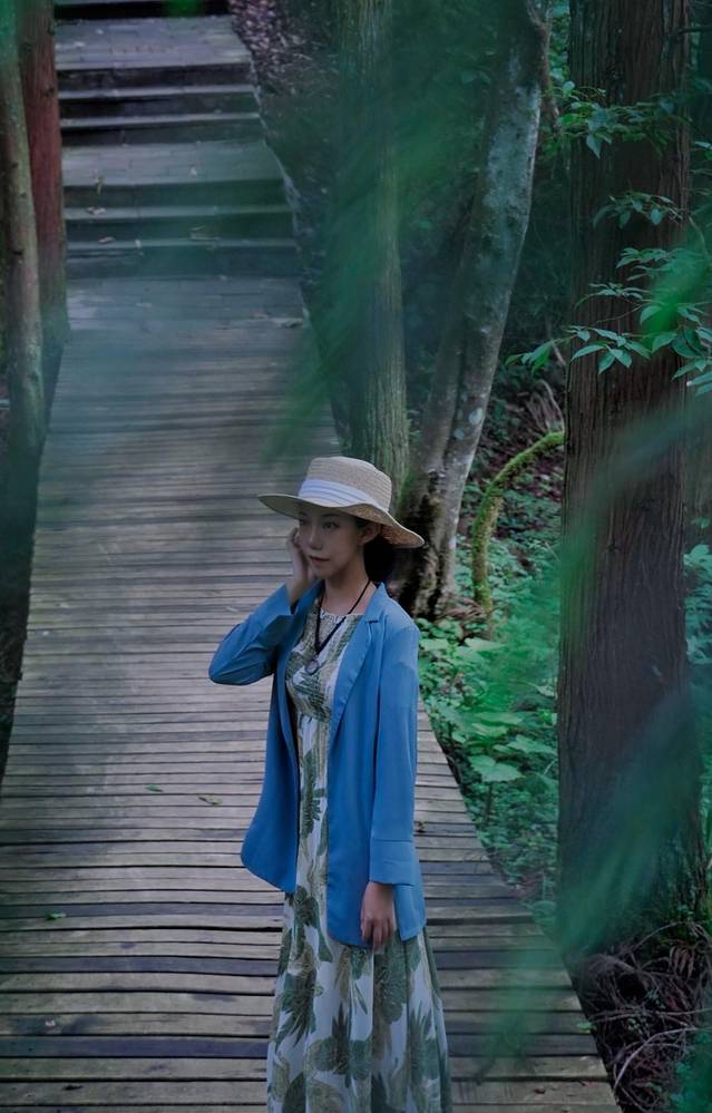 为了证明我们来过打卡,特意找了片很森系的杉树林拍了一组人像照片,不得不说,这片杉树林是这次行程中最适合拍人像的杉树林,终于拍出森女风。