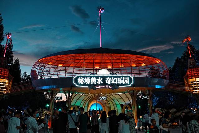这家位于黄水镇上的奇幻乐园刚开业不久,我们既然来了就必须得打个卡尝尝鲜,晚饭后来一趟夜游秘境。