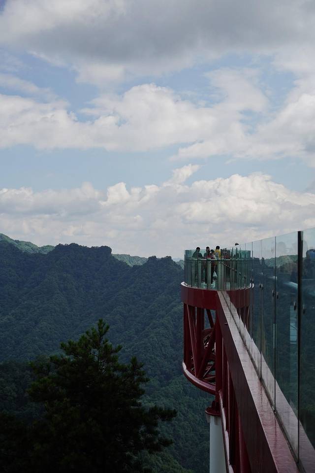玻璃桥是最佳观景的地方,站在桥上,山风,林海,远处山峦层叠,美不胜收。另一个最佳的观景点就在接近登顶一百多米的观景台,透过林木观看远山含黛,如淡墨国画,天边风起云涌,太阳湖如一颗钻石般亮晶晶地镶嵌在林海中,壮观!