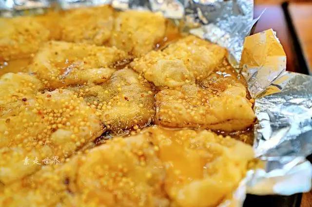 这种奶豆腐口感带酸,有些类似广东菜的糖醋类做法,上面洒上少许小米芝麻,口感粘中带糯.