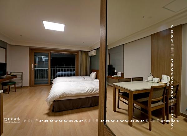 一下从庆尚北道的庆州切换到在韩国江原道洪川百玩地公园内的大明度假村,特别喜欢这种跳跃式的度假方式,尝试不同的住宿风格是旅行中的乐趣,可以一个人行走,也可以一帮人狂欢。这家度假酒店传承着韩国家居的传统风格,简约朴实,却又严谨舒适。跑累了,很想在奔跑中停下来找个有吃有住有玩的地方放松一下,顺便和朋友聚聚,所以搬到这里,一帮朋友在这里聚餐,逛街,玩电动或KTV各种配套设施,就打算这样消磨着假期。酒店每天早上有车到首尔接送到度假村,今天来到天已经黑了,因此外面景致已经看不见,先简单拍几张房间和公共设施照片,天明再拍外景。