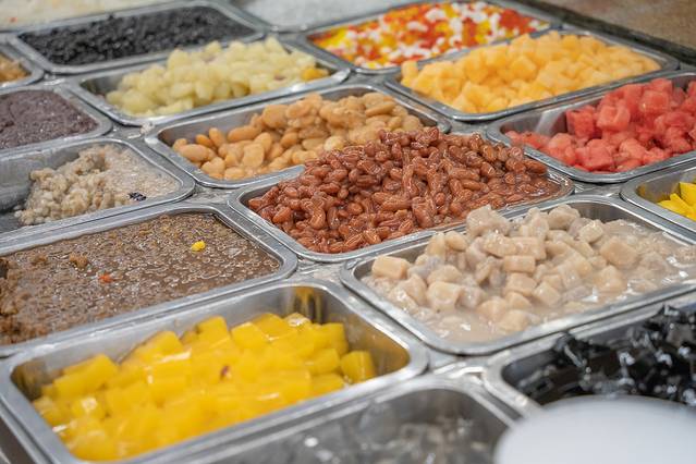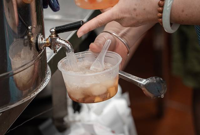 来泉州绝对不可错过四果汤,来天后宫一定要来秉正堂来一碗,秉正堂佐料的选品也非常的多,有清凉解暑的绿豆、红豆、枣糕以及各种口味的水果,还有健康养生的莲子、银耳,佐料五花八门、玲瑯满目,再加上独特的石花膏,口感极好。