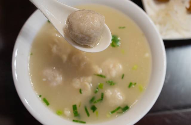 店内必点的是水丸汤和炸鸡卷,水丸汤一碗10元,水丸又大又有料。汤是骨汤,撒点葱花,加点胡椒粉,又香又好喝。炸鸡卷则是闽南有名的小吃,里面还加了马蹄,味道很不错。