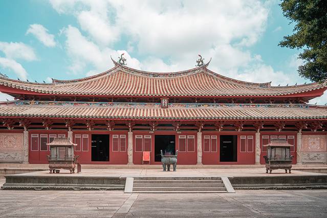 泉州历史上也曾建有多座文庙,能够保存至今且与众不同的是始建于唐开元末年的府文庙。府文庙是一个集宋、元、明、清四个朝代的建筑风格的孔庙建筑群,也是东南地区最大的孔庙建筑群。