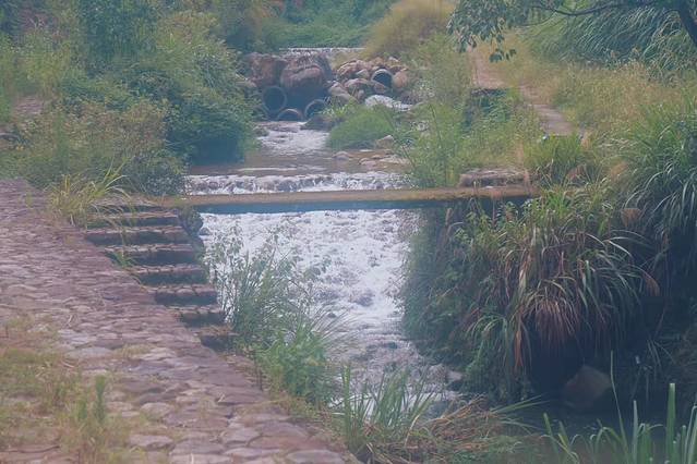 山谷间蜂蝶、蜻蜓、蟋蟀、蚂蚱、毛毛虫、蛤蟆、水蛇……在湿润的环境中生活得好呀。山间的修整较少,所以山间的草木显得有些杂乱,怕虫的我满是一惊一乍,我不知道,应该有不怕的人,觉得这是自然有趣的地方吧。