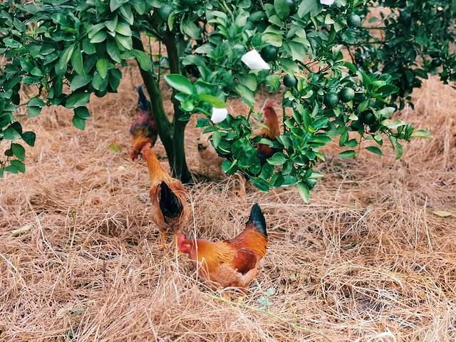 下午爬橘子山,一会儿天晴,一会儿雨。云在山间汇聚,看雨的时候也看云,此处有赋诗一首的感觉。白鹭在河边飞落,白像云的亲戚,白墙错落在翠绿的山色之间,闲散的公鸡、嚣张的鹅自由地在园林里散步,乡间意境十足。没有人管,没有人可以安排,山间木质结构的“沁心亭”也被家禽占领。