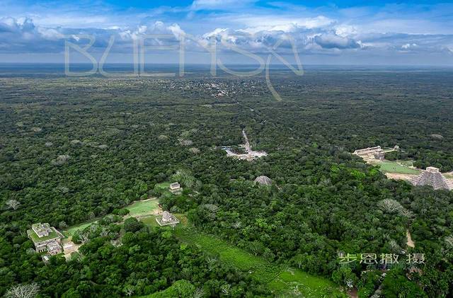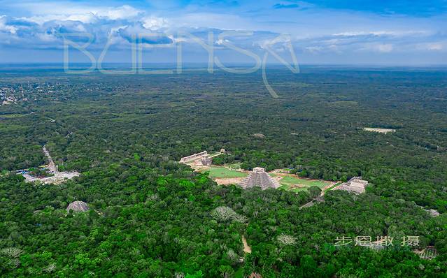 都说奇琴伊察上方是不能去飞无人机的。我们住的饭店我看了地图直线距离还算蛮近了,就在一早先把无人机升空看了看。确实能在饭店的位置就看到那处遗迹,也不敢把飞机飞的太过靠近,毕竟当地是禁止无人机在遗迹上空飞行的。所以就在比较远的位置拍了几张遗迹的图片,也算是一观全貌了。