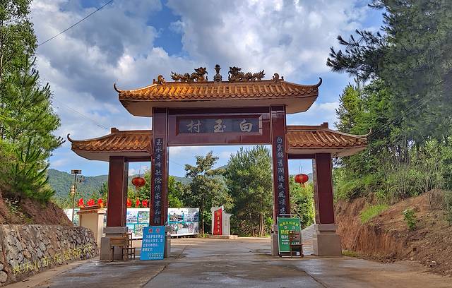 走进白玉村,迎面是一座写着“白玉村”三个大字的门楼。门楼左边有一排宣传白玉村的大型图文广告,游客可以借此了解白玉村的基本情况。