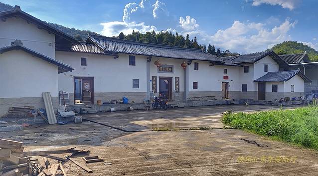 广告牌中最醒目的是一幅用无人机拍摄的有几座大型古民居的白玉村风景照。白玉村现存的传统民居中,有些大型的古民居已经粉刷一新,看不出多少古朴的韵味。白玉村最古老的古民居,有400多年历史的丘氏宗祠,也全面翻新,屋顶换成了灰色的琉璃瓦。