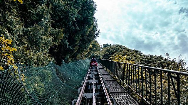 银杏树叶有了一番秋色,就着银杏引路,乘坐高空滑道,一览秋日好风光,还可以省却10分钟的步行时间,安逸的醉在这山间的氧气里。