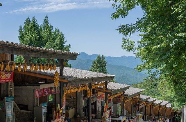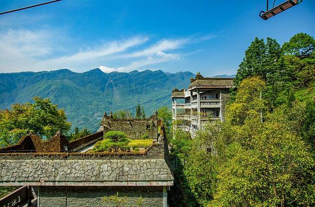 自游客中心乘坐云中羌寨索道上山(步行经游步道约1小时路程),下索道后会看见西羌酒店(除此以外景区内还有险山宾馆,松山小筑,羌山石居等住宿可以预定)。