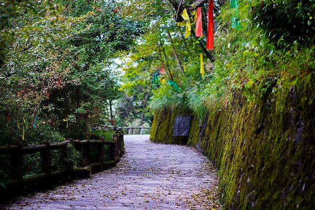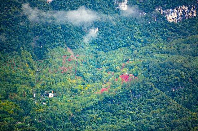 长长的尔玛古道出现在眼前,这里是秋色的聚集地,绿叶、红枫汇成一道道光景,和着岁月沉淀的石壁,在羌族历史中缓步前行,秋风、秋色、秋意便在这淋漓尽致的体现。
