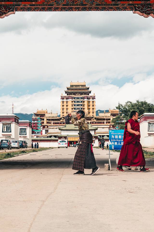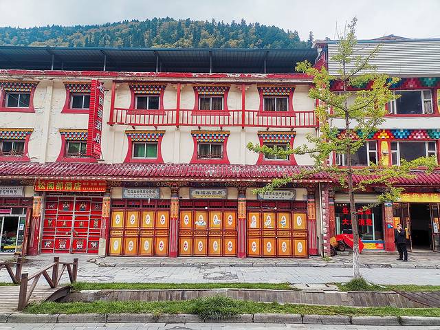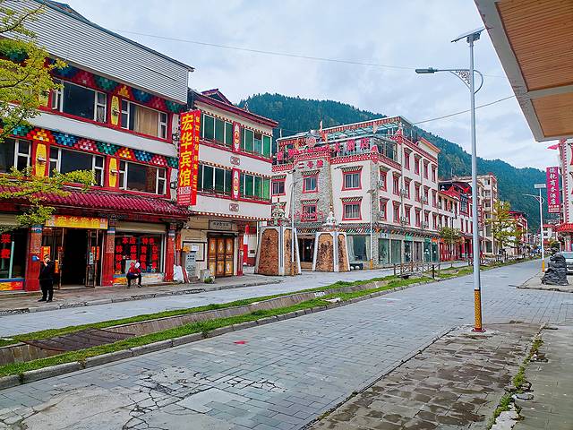 阿坝县城不大,从县城的这头走到另一头,也不过个把个钟头的时间。但却很繁华,街道两旁店铺林立,吃的、住的、用的一应俱全,瓜果时蔬、牦牛酸奶是应有尽用。我们这趟的行程,住在阿坝,每日从阿坝县出发,前往景区,晚上返回。