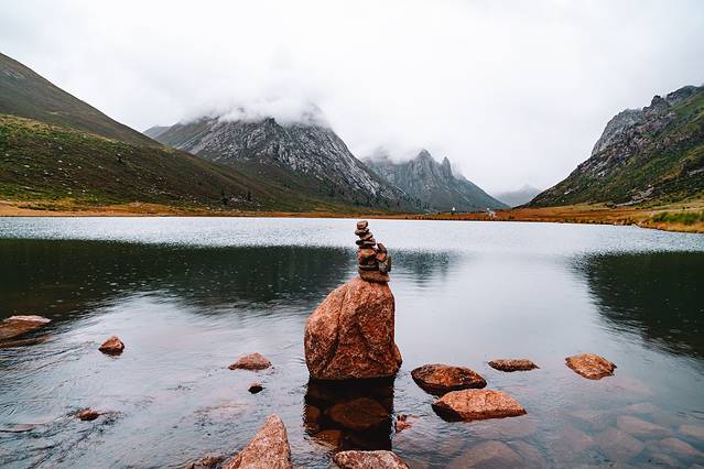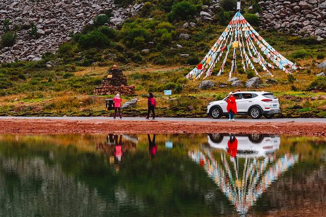 驱车而来,由下至上,依次可见的是柏香海、落霞湖、兰卓措、好运瀑、黄鸭滩和100%推荐的圣洁之湖扎尕尔措。扎尕尔措海拔4200米,背靠千仞壁,面积约3平方公里,周围玛尼堆林立。绕湖一圈,踏青闻香,雪化无声,鸟鸣啾啾,流水潺潺,拜神山之巅,拂心灵天路。