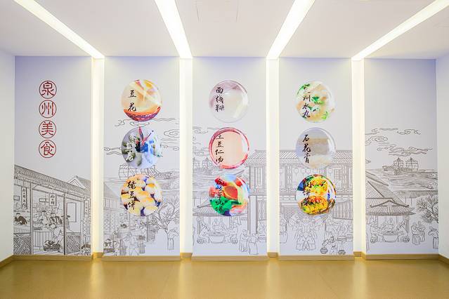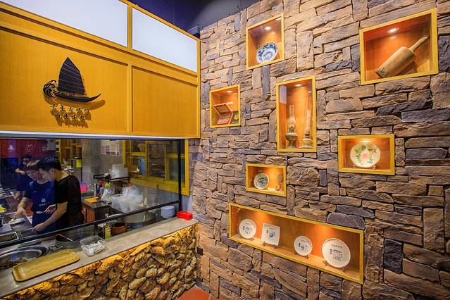 店内打造百年闽南康熙盛年的繁华景致,凸显大气。亭台楼阁、城墙水景,品种丰富的美食,闽南戏曲演绎,丫头小二们穿梭于红墙间的小巷,还原民生繁华的古清街景。