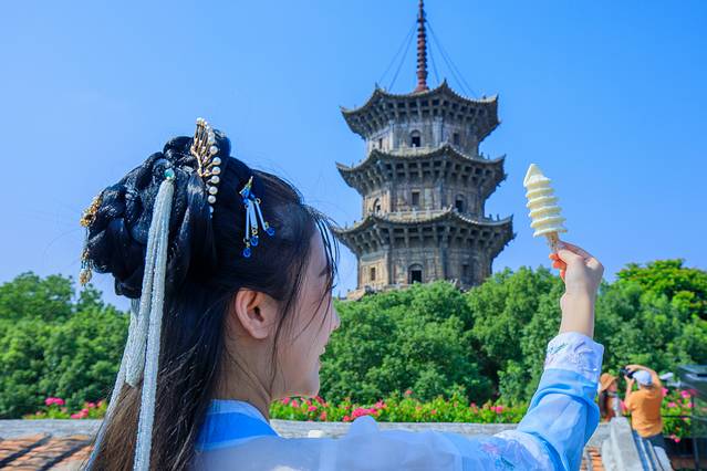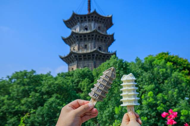 结合众多地标性建筑的文创雪糕绝对是相当的吸睛啊!拿着雪糕还可以直接走上3楼的露台和地标东塔合影,活脱脱的一个网红打卡点就这样自然而然的生成了,最主要它还是公益,完全免费开放的!难怪这里被誉为 泉州 最美的 天台 !
