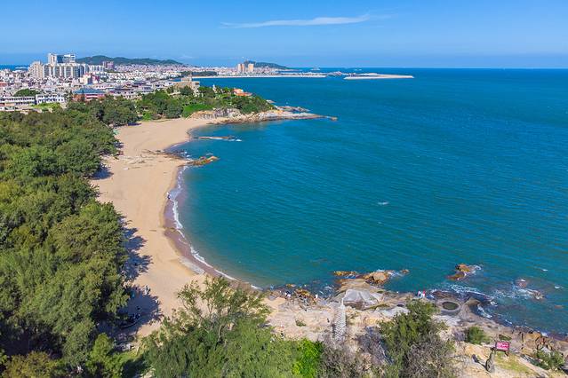 在普通游人眼里, 崇武 半岛不过是一个美丽的海湾,但它在古代 海防 中有着重要地位。现在能看到的古城,是1983年修复过的。翻过一座小山,眼前是一片像月牙一般弯弯的沙滩,那是著名的 半月湾 ,也叫 五峰 海滩。