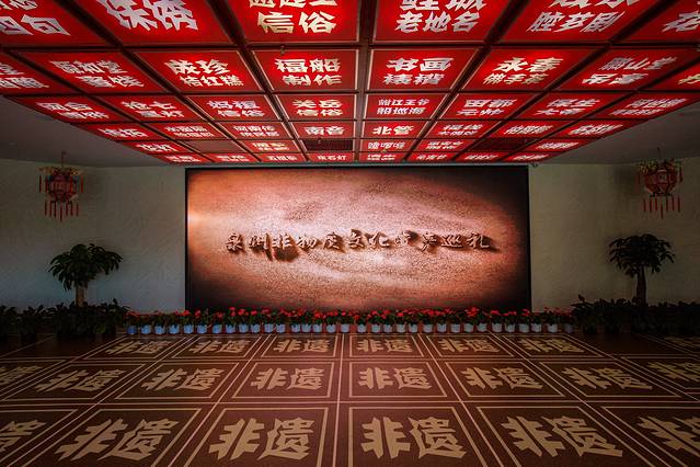 初次踏入 泉州 非物质文化遗产馆,二楼大屏幕直入眼帘,滚动播出 泉州 非遗的情况和风采。