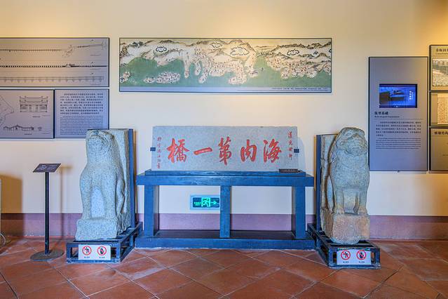 桥中央碑亭刻有明万历年间有“西川甘露”碑刻和 清道 光间石刻“天下第一桥”横额。石桥本身也是 晋江 和 惠安 的分界线。