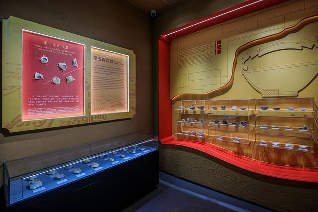 展览中展出了 泉州 南外宗正司遗址中出土的各类陶瓷器。陈列馆中展出的“官”字砖和瓦、十九瓣莲花纹瓦当、兽面纹瓦当等建筑构件,以及“水陆”“赵”等墨书瓷碗底的墨书内容,佐证了遗址位置和建筑遗址性质。