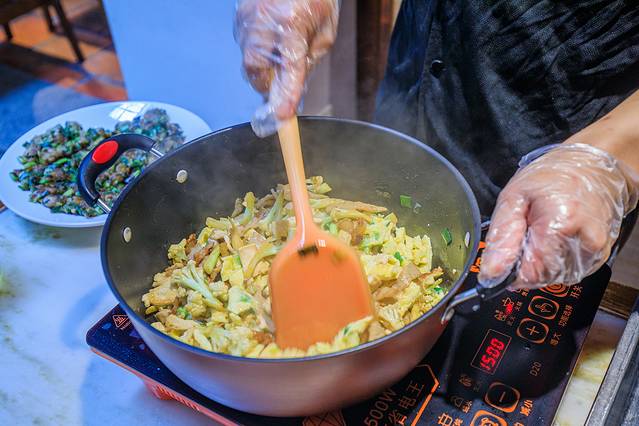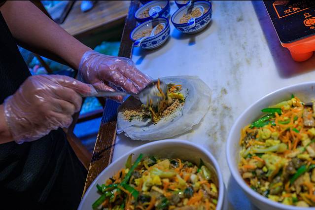 还有现场炒制食材的手卷饼也是地道的闽南小吃,不容错过。