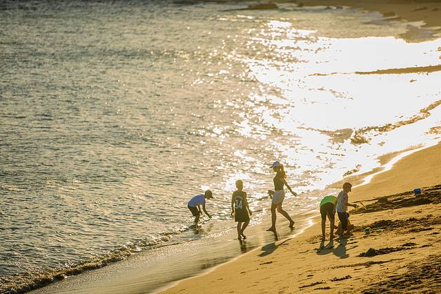 沿着 崇武 古城前的滨海路一直向前走不远处就是当地的另一个知名景点 惠女风情园。风情园的海边,松涛阵阵,海鸟在暮色中飞翔于广阔的云空,夕阳下一群群游人或驻足于风情园的礁石上,或信步于海滩上。
