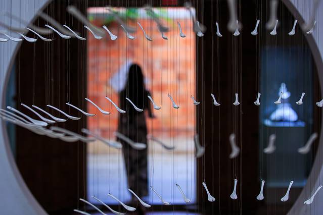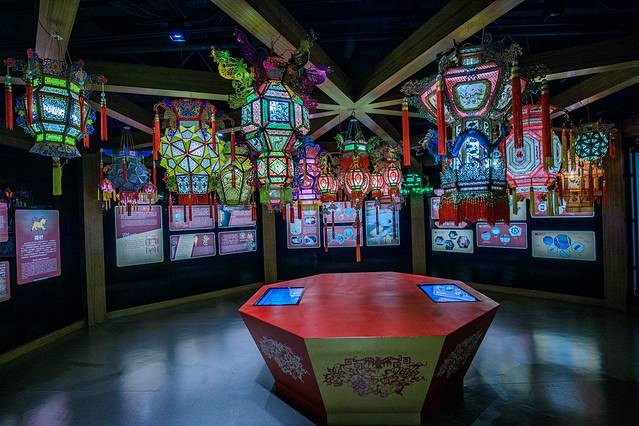 二层的展示主题为“物华之美,民间瑰宝”。在今后的常态化展览中,这里主要展示 泉州 非遗的传统美术项目。 泉州 的传统美术种类繁多,有石雕、木雕、纸织画、木偶头雕刻、彩扎、纸扎、花灯等。各个种类都有悠久的传承历程,精湛的制作技艺,深厚的文化底蕴。