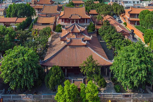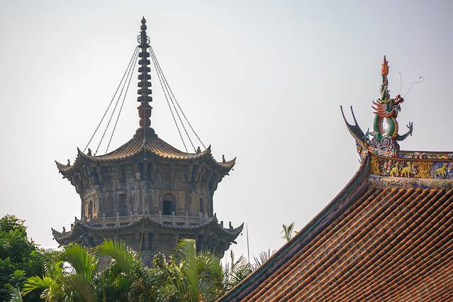 开元寺树木繁盛,有一种鸟鸣山幽之感,让人清心寡欲,摆脱了尘世的喧嚣,甚为逸静,很难想象外面就是都市。