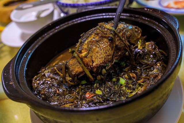 招牌菜有蒸肉丸、桂花蟹肉、家乡甜芋头、藤椒珍珠斑、芥末虾、中鲍鱼焖双豆等,相较于前几日的闽南菜而言,这里的菜品规格和摆盘更上档次,就菜品的口味和用餐环境而言,性价比还是很高的。