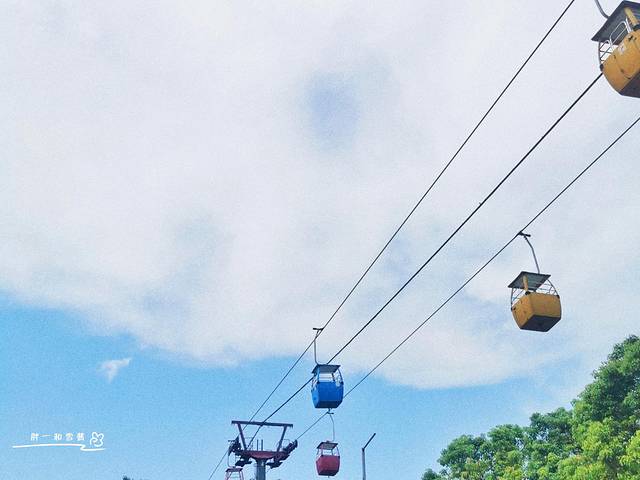 在山下的观光索道售票处,直接购买了往返票。单程索道约18分钟。在5月的天气,不热不冷,坐在车厢里,欣赏整个江北的自然风光,心旷神怡。