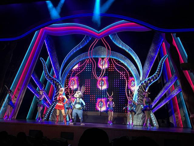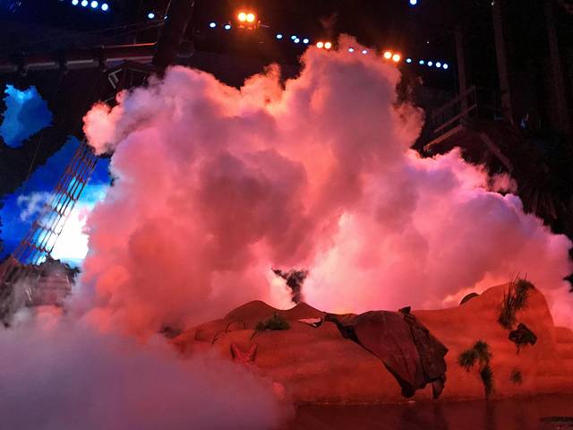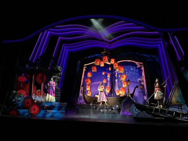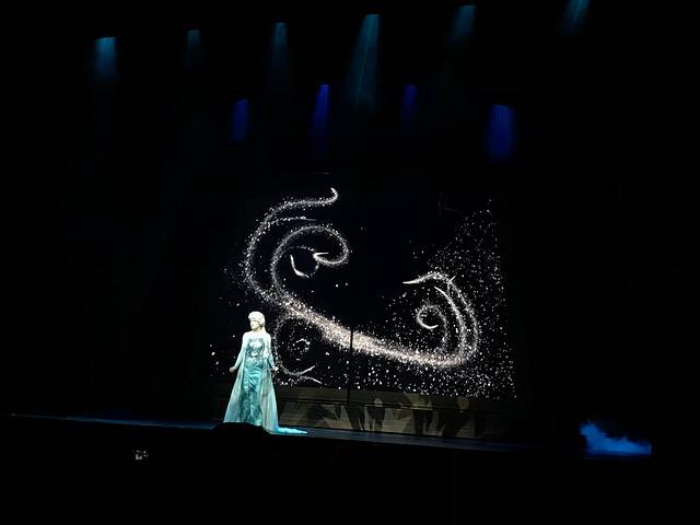 这个演出真的非常好看,我们8月那次去也是看了两遍。演出结束的时候会有金色的彩带飞出来,小朋友会超级开心,如果想要拿到就要在预约时间内早一点排队,进去太晚,坐后面就不在彩带区域了,大概前四五排这样有吧,不过坐后面演出可以看得更全面。