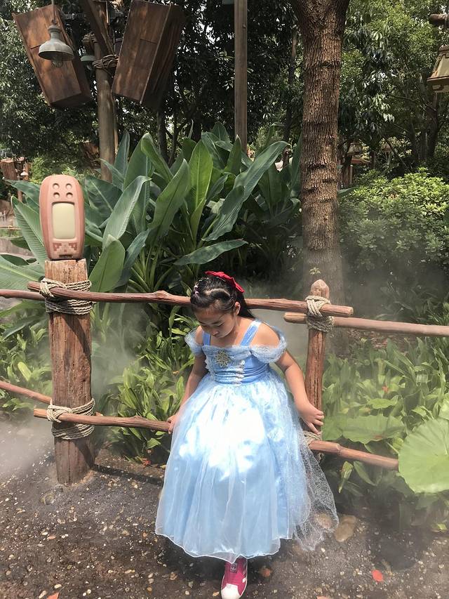 这边还有一块空地,会有很多水雾,拍照也非常仙。这条裙子,娇娇之前穿着去过上海迪士尼、东京迪士尼。现在已经小了,只能勉强套上,这是最后一次穿了,留个念,看着小朋友一点点长大还是很感概的。