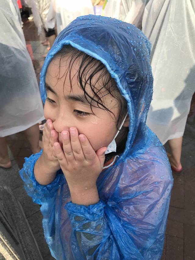 夏天去迪士尼,尤其带着孩子,玩水少不了,看演出时候第一排特别清楚,但是一定会全身都湿掉,记得带着雨披和多带几件短袖,另外建议再带一双鞋或者光脚去,我们就疏忽了脚下,结果鞋子全湿了。雷鸣山和海盗船也会遇到水哦。