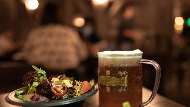 古老的建筑盏盏灯火下,一切都显得更加神秘,这里可是霍格莫德村的巫师都会来的地方。餐厅里提供的是正宗地道的英式美食,香气十足的烤鸡、淋满了酱汁的猪肋排、还有沙拉、甜点、南瓜汁等,都是非常经典的英式料理。一定不能错过的还有大名鼎鼎的黄油啤酒?(不含酒精)