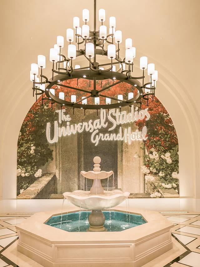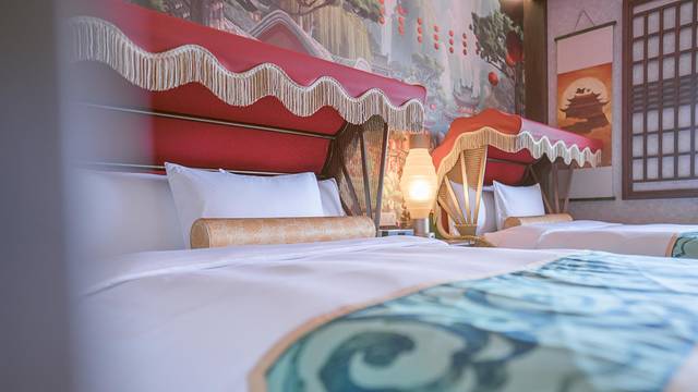 “环球影城大酒店“以现代摩登的方式重新演绎二十世纪初的电影文化,酒店外观采用西班牙风格,就在北京环球影城的入口处,绝对的快人一步进入园区,经典的功夫熊猫主题的客房里处处都能看到电影元素,里面的床头柜、平先生面馆的长桌都是场景重现。