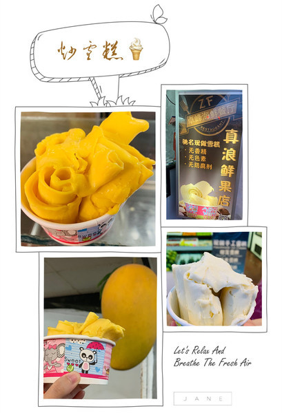 炒着吃的冰淇淋,榴莲味和芒果味,真的是让人流连忘返的味道!