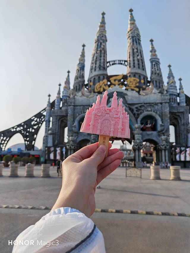在欧乐堡,网红雪糕是不能错过的。跟园区大门同款的雪糕,几乎是夏秋季节,每个游客必点的特色冷饮。拿着雪糕拍照打卡又是漂亮小姐姐们的最爱。