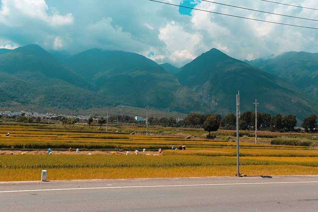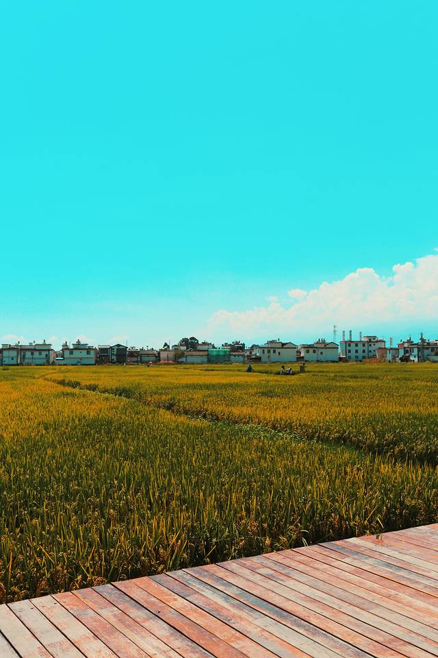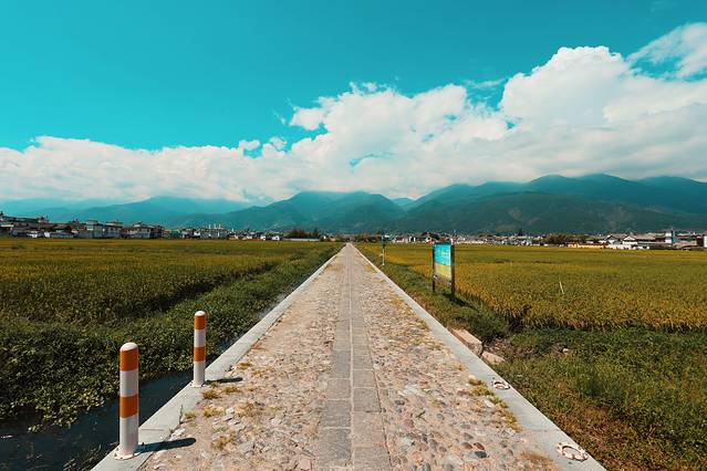 在大理所有的田野里,我独爱喜洲的田野。辽阔得像一整片海洋,所以进入喜洲,没有在镇里逛集市,我就直接来到古镇后方的田野里撒欢。