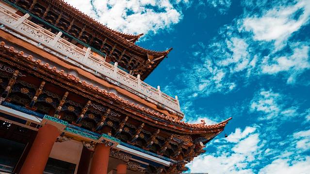 沿着白色阶梯一路爬上,精美的建筑风格吸引了很多小姐姐在这里拍照。