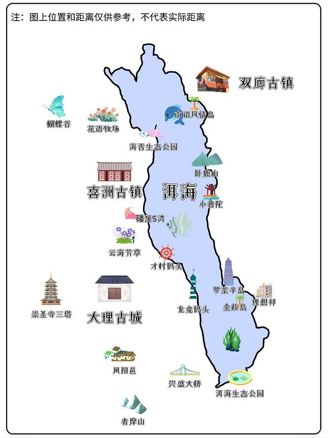 在这里给大家分享一张我自制的洱海周边值得一去的地点的地图,当然洱海周边好玩的地方实在太多啦,所以可能也没有那么全面,大家可以稍微参考一下!