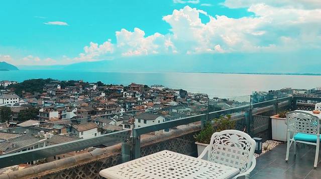 坐落在洱海旁,层层的阶梯,设计感的建筑,真让人有几分身处圣托里尼的感觉。