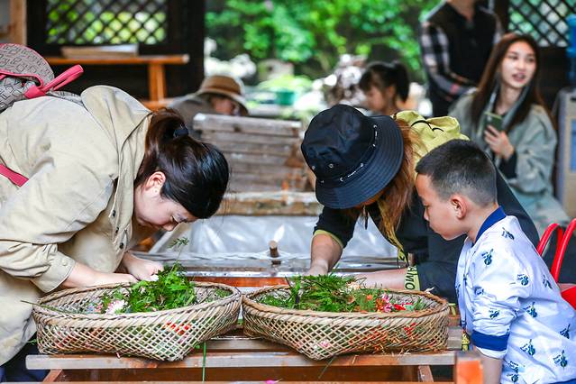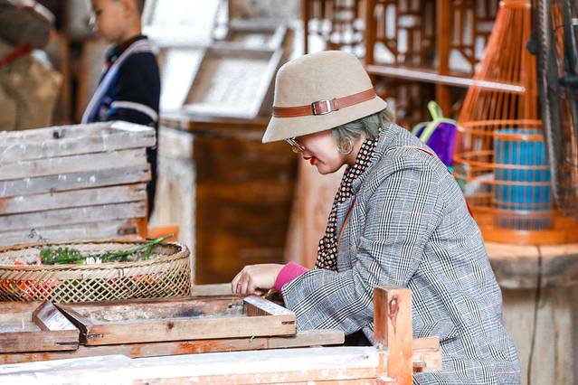 在造纸小院、蜡染小院、鸟笼小院中,不仅可以亲眼见证传承手艺的精美绝妙,也可以亲自动手感受非遗的魅力,甚至还可以将这些精美的成果提在手中,穿上身上,带回家中!