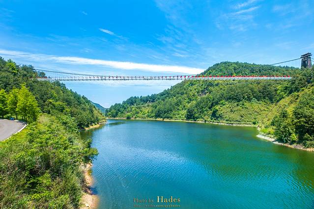 吃饱喝足,不妨去运动一下。跨过横亘湖面的吊桥,不仅可以欣赏两岸如画的风景,还可以坐上高空秋千,享受下拥抱云端的浪漫与刺激。