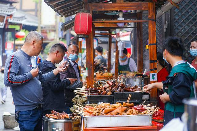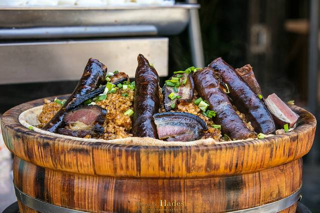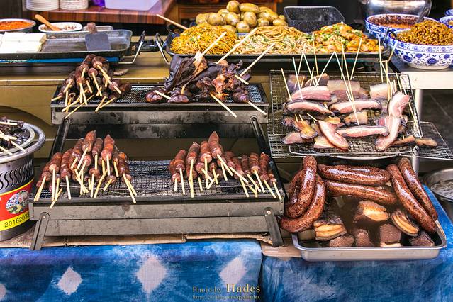 民族特色浓郁的街道两侧,也摆满了各色诱人的小吃美食。其中当地特色的腊味是最抢眼也是最诱人的滋味。当地的腊肉制品外皮色泽大多黑亮,肉质紧实香醇,烟熏味道也更浓郁回香。此等诱惑不仅可以当街品尝,更是很好的伴手礼。