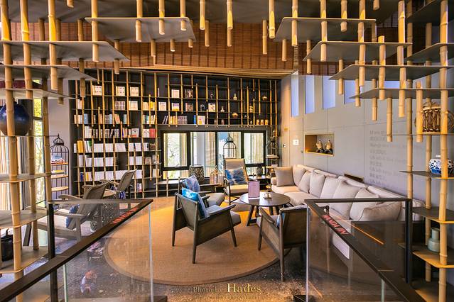 酒店之中还隐藏着一处网红图书馆。图书馆上下两层,设计精妙,风格唯美,深受游客的喜爱。