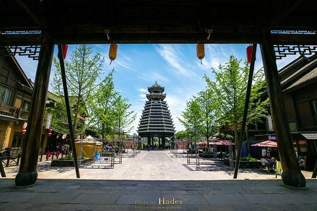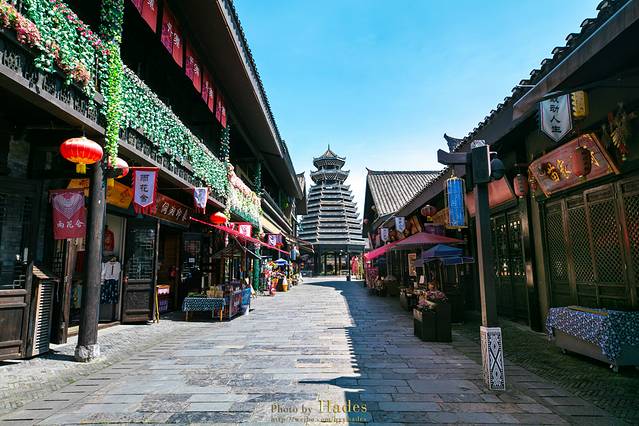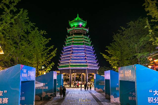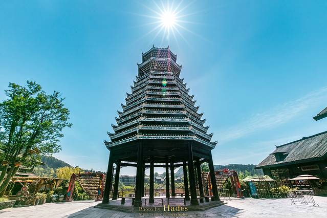 位于鼓楼广场的这座13层高的建筑是侗族鼓楼。它是侗族的标志性建筑,也是小镇地标打卡点。