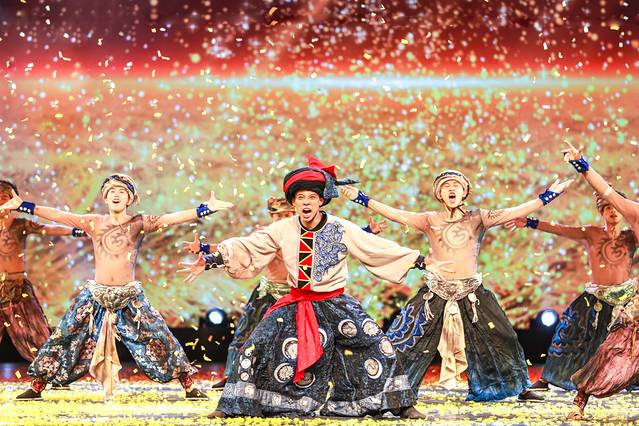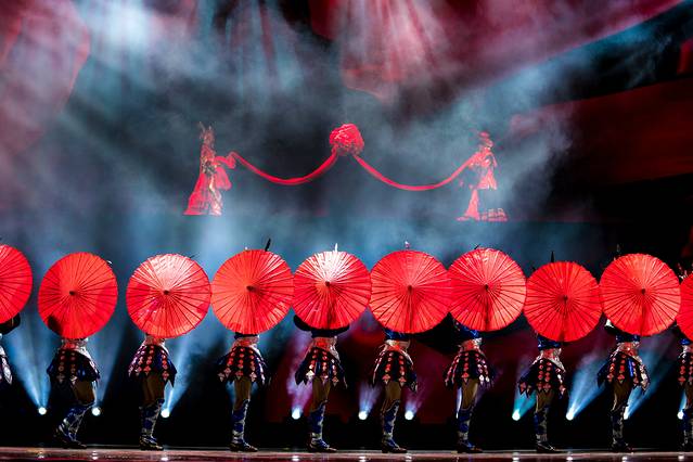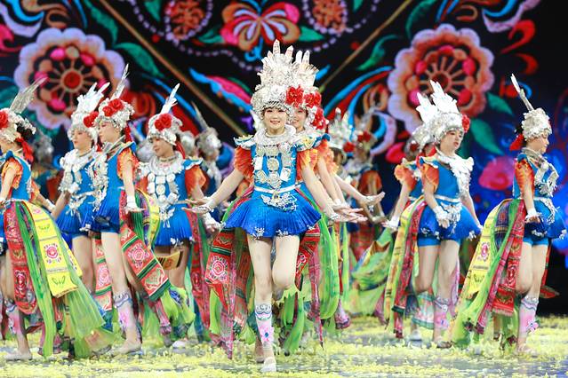 如果篝火前的歌舞意犹未尽,那就到《锦秀丹寨》的大型演艺现场继续感受丹寨风情吧!《锦秀丹寨》是为丹寨万达小镇定制的大型苗族歌舞秀,它将现代高科技舞台设备和民族歌舞完美结合,生动演绎苗族大迁徙的传奇故事。