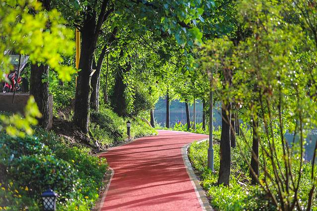如果还想继续漫步,环湖步道是最佳的选择。这条环湖步道全长 4.5 公里,风景独佳。沿着步道跑步,可充分感受水清雾奇的小镇之美,沿途还设置了计时设备和多个摄影景观平台,是全国独具特色的跑步打卡地。