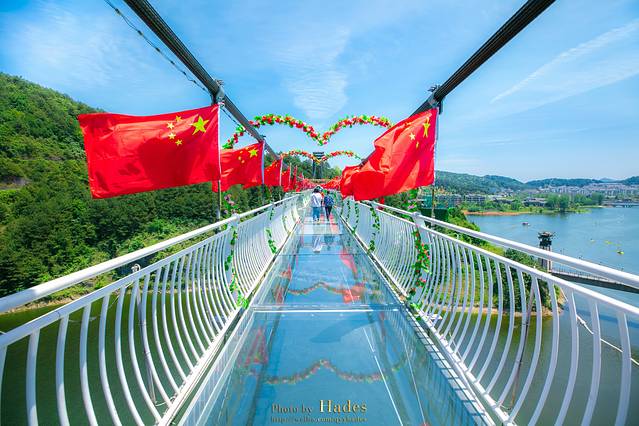 高空之上的这座炫彩玻璃桥全长 320 米,是贵州省第一座悬空玻璃长桥。这里高度更高,视野更好,可以一览小镇的全貌。当然,桥上的风景并不是每个人都可以从容欣赏的。透明的玻璃,悬空的惊惧,过这座桥怕是对每个人都是一次小小的考验!
