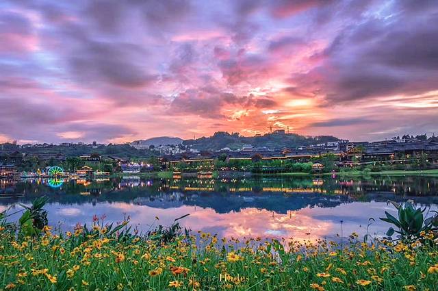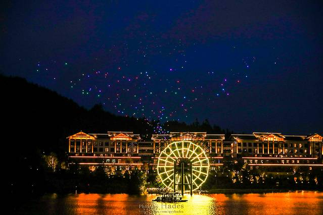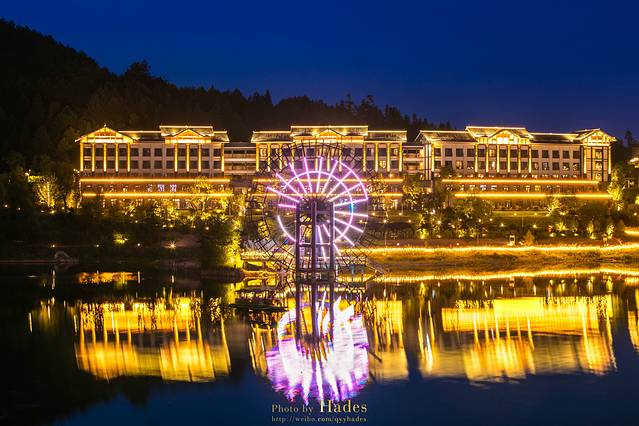 这座位于东湖畔的大水车直径 26.08米,于 2017 年 6 月 26 日通过吉尼斯世界纪录认证,是世界上直径最大的水车。即便就是这一轮水车,每晚也有不同的风情。